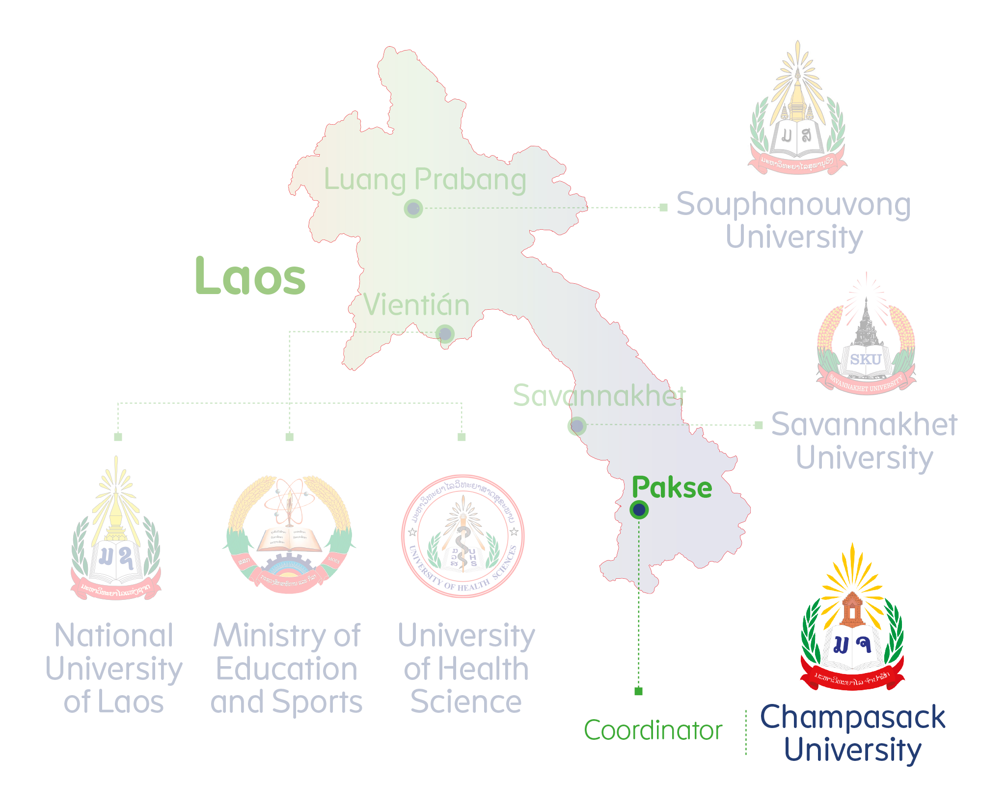 CU is a public institution and a hub for Higher Education (HE), research and cooperation in Pakse, a city located over 600 km south from the capital and 2nd largest by population in Laos. CU consists of 6 faculties: education, agriculture and forestry, economics and management, law and public administration, engineering and natural science. CU offers 29 programs of Bachelor Degree, 13 programs of postgraduates Degree and 7 other programs.The University has 5694 Students, 416 staff members and 7 centers for academic service. CU is a member of the Joint Declaration of ASEAN-China on Establishing Network for Cooperation and Exchange among Engineering and Technology Universities consists of 20 universities members from ASEAN and China. CU has also established a center of Excellent Laboratory in Agriculture.